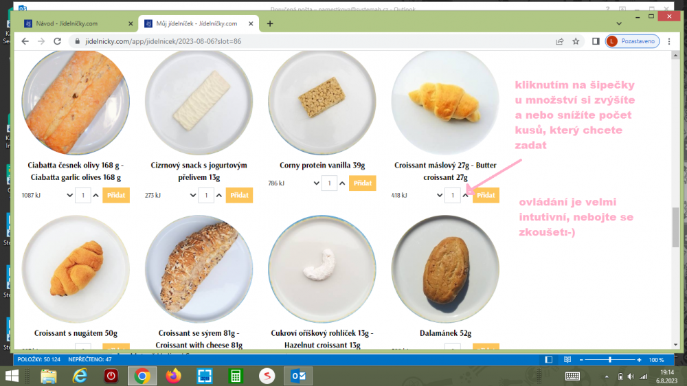 Když něco potřebujete zadat ve větším množství, než je na obrázku, tak to naklikejte vícekrát – příklad: potřebuji sníst 10 švestek. Nafocené jsou 3 a 1. Tedy dám 3 švestky 3x a 1 jednou a načte se mi 10 švestek.